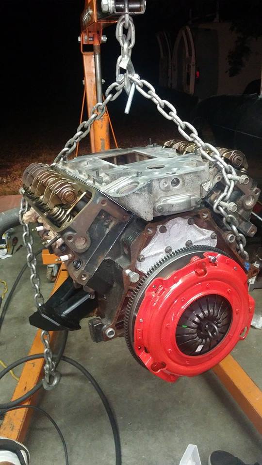 Next, I bought a clutch and flywheel. We bolted up the transmission and put it in the car. The next day we started to put the parts of the motor together until we go to the starter. We realized that when we made the motor mounts it was only the block that we had. The starter was resting on the steering rack joint, so we placed spacers underneath the mounts and although not pretty the motor is nicely set in the car now. I didn’t have the funds to redo the mounts anyway.